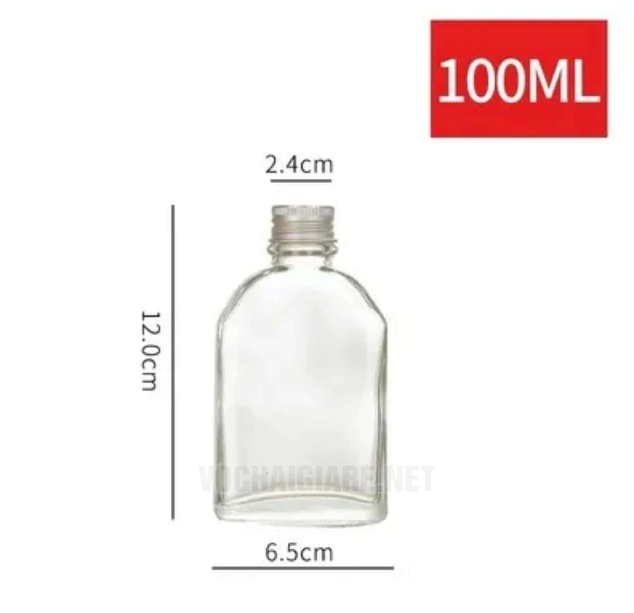 Chai thủy tinh dẹt nắp nhôm xén vai – 100ml